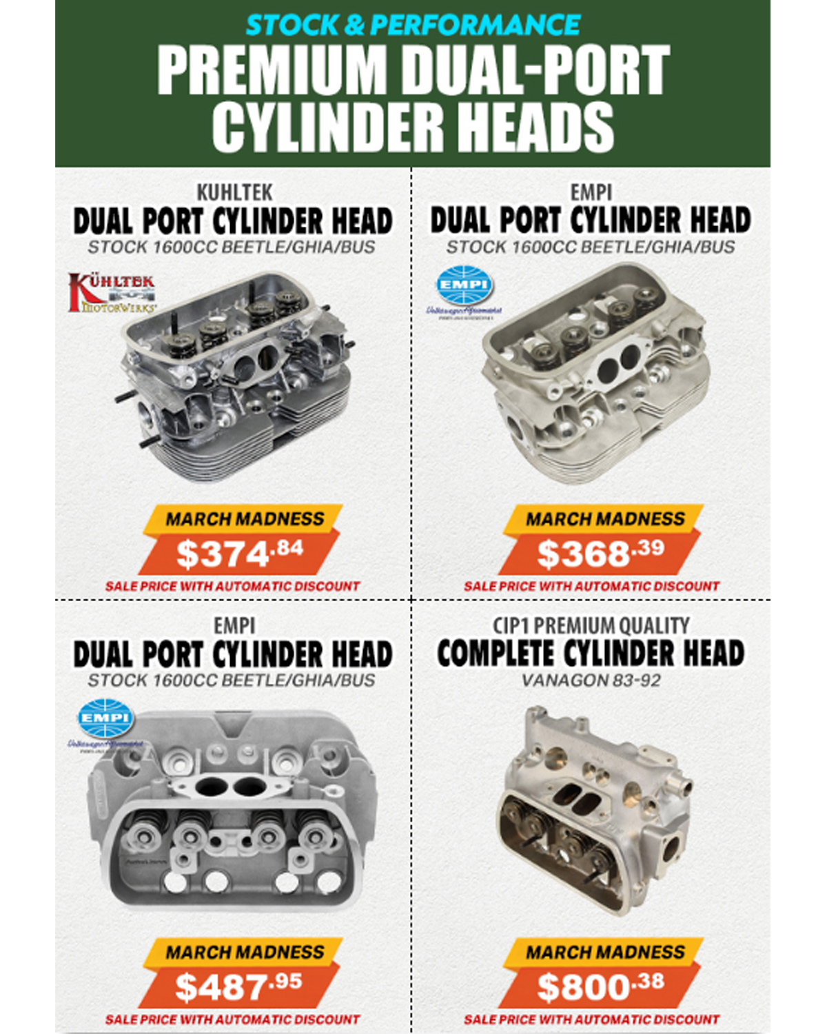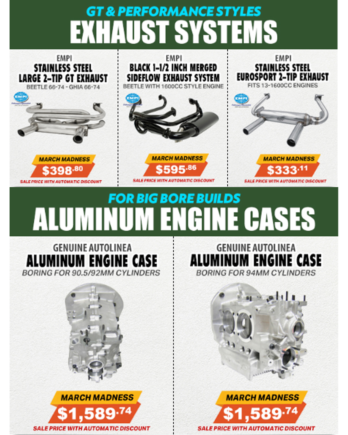 ACC-C10-5063 - 043-101-025-AL - 043101025AL - GENUINE AUTOLINEA - ALUMINUM UNIVERSAL ENGINE CASE - ALL STOCK 1600CC ENGINE - INCLUDES 8MM AND 10MM CYLINDER STUD INSERTS - SOLD EACH